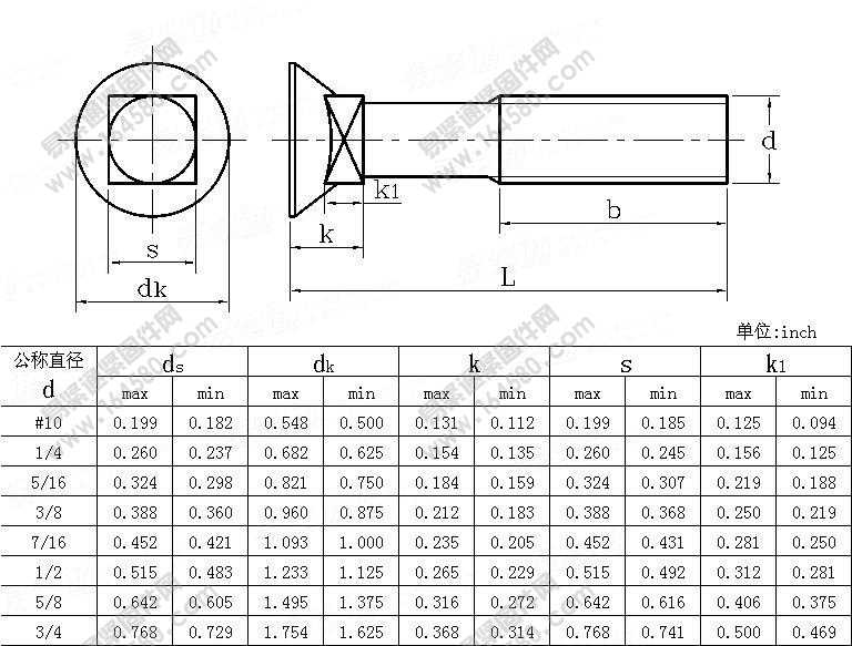 美标ASME/ANSI B18.5-1978 ASME/ANSI18.5 18. 沉头方颈[更多]