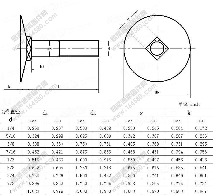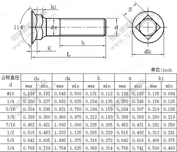 美标ASME/ANSI B18.5-1998 ASME/ANSI18.5 18. 沉头方颈[更多]