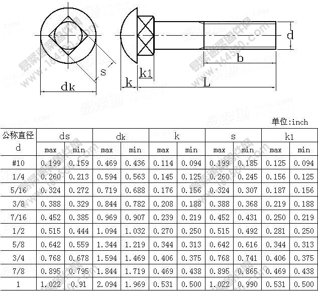 美标ASME/ANSI B18.5-1998 ASME/ANSI18.5 18. 圆头方颈[更多]